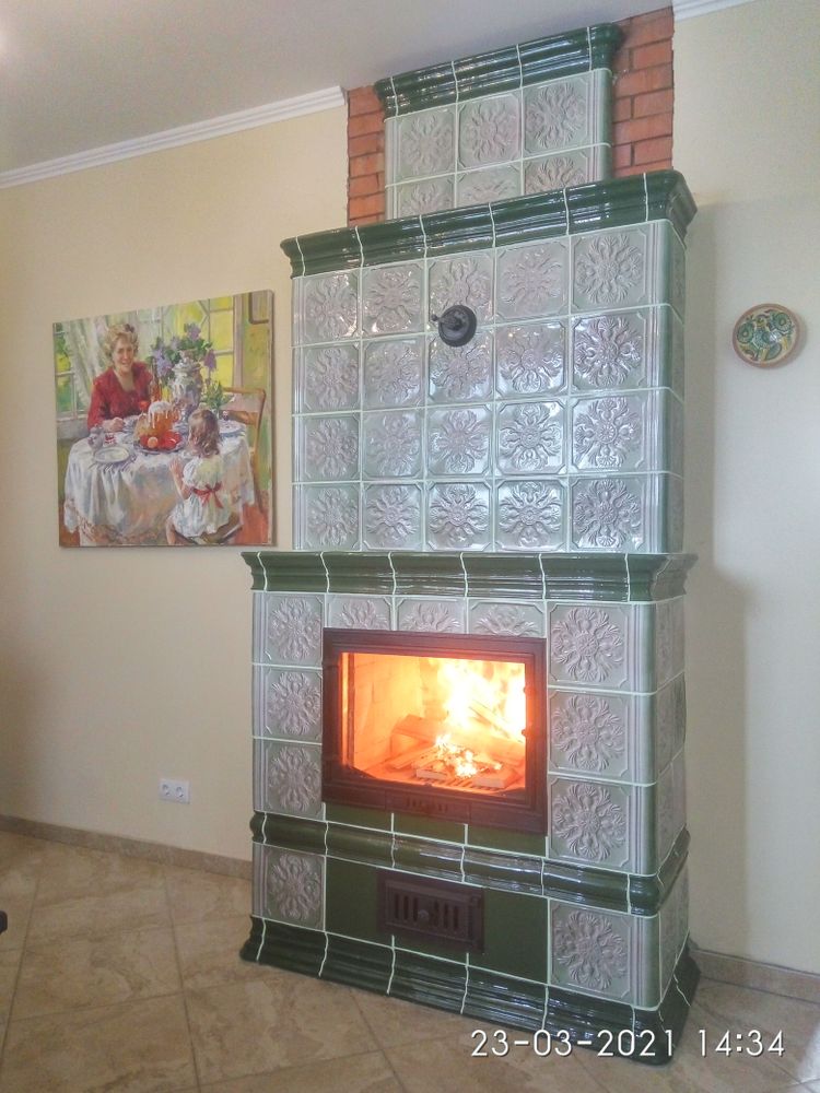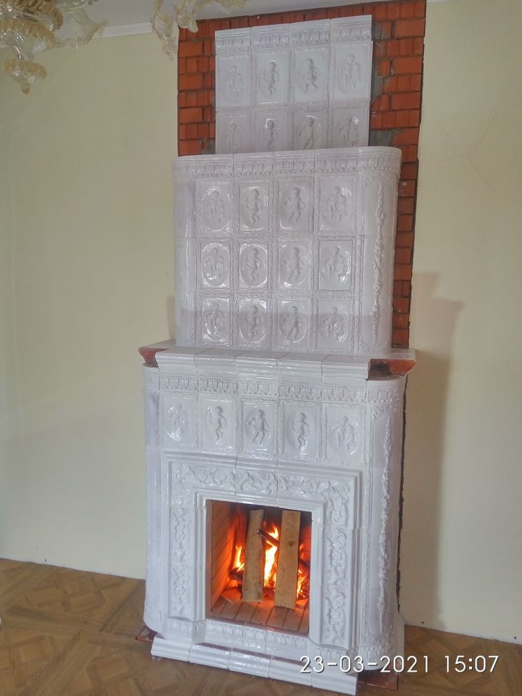 Изразцовые камины "Беловежская пуща" и "Белый ангел".